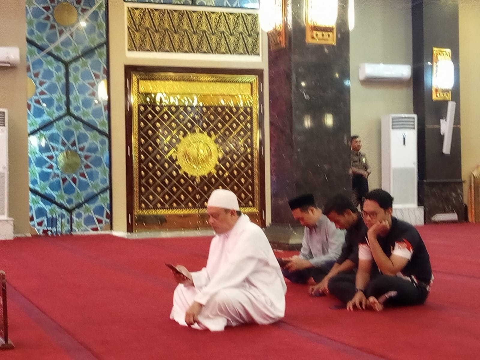 Acara yang dimulai selepas salat Maghrib berjamaah ini menjadi momentum spiritual yang mempererat hubungan keilmuan dan ukhuwah antara Indonesia dan Malaysia, khususnya antara IAITF Dumai dan Jabatan Mufti Negeri Melaka. Sejak sore hari, mahasiswa IAITF Dumai sudah mulai datang ke area Dumai Islamic Center, mengikuti imbauan kampus untuk melaksanakan salat Maghrib berjamaah bersama sebelum acara dimulai. Rektor IAITF Dumai, Assoc. Prof. Dr. H. Rizal Akbar, S.Si., M.Phil., turut hadir bersama Ketua SPI IAITF Dumai, Ibu. Hj. Lestari Fitriny, M.E serta jajaran pimpinan kampus dan tamu dari Malaysia.