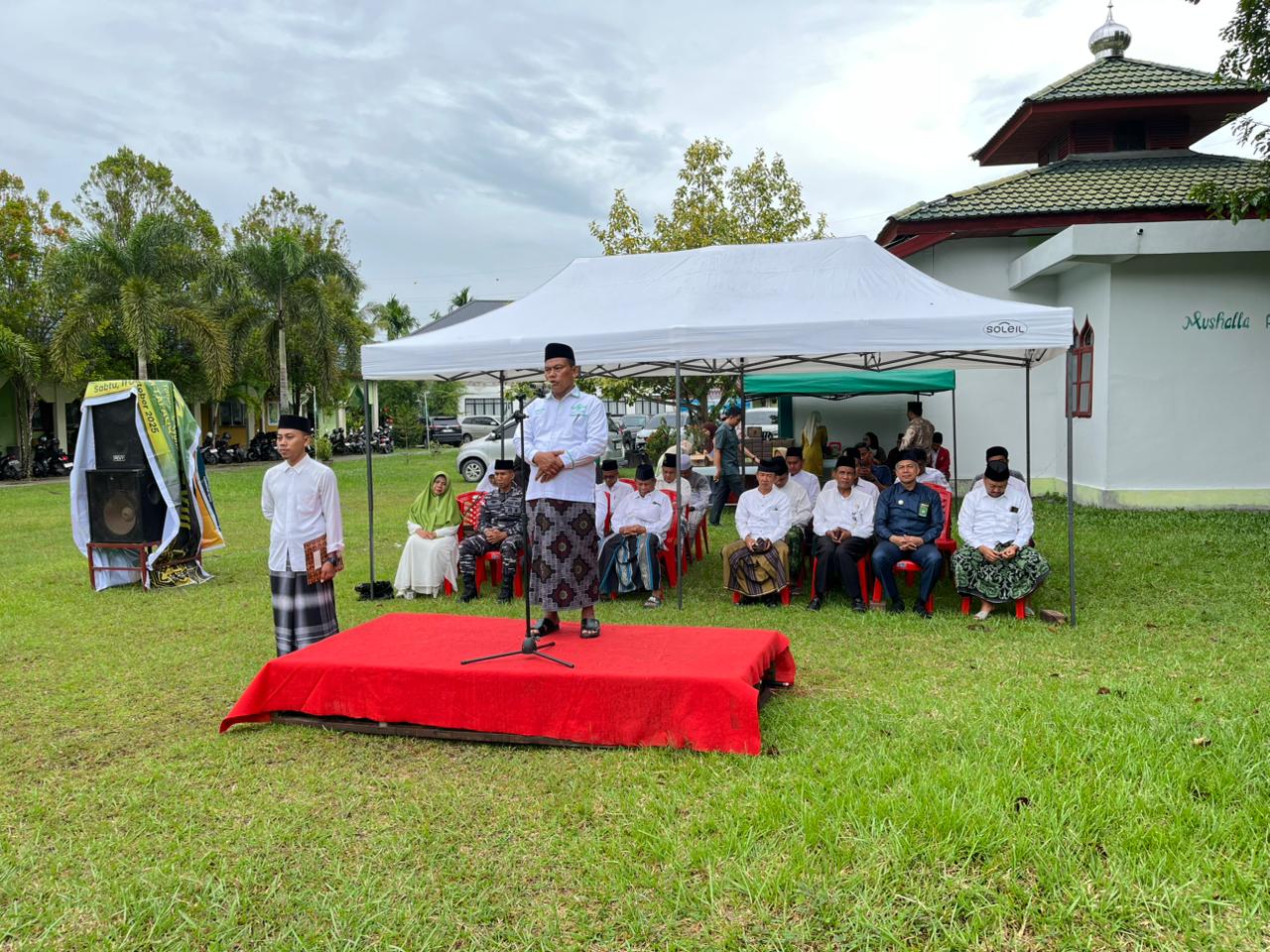 Iaitfdumai.ac.id – Dumai, 22 Oktober 2025 – Meskipun sempat diguyur hujan pada pagi hari, semangat santri di Kampus Institut Agama Islam Tafaqquh Fiddin (IAITF) Dumai tidak surut dalam menyambut peringatan Hari Santri Nasional (HSN) 2025. Hujan yang turun sejak subuh membuat persiapan upacara sedikit tertunda, namun sekitar pukul 08.00 WIB lebih, langit mulai cerah dan pelaksanaan upacara pun dapat berlangsung dengan khidmat dan penuh semangat.