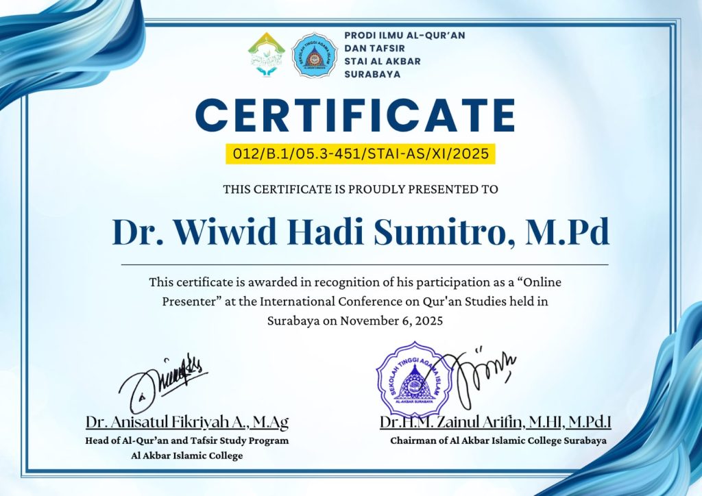 Iaitfdumai.ac.id – Surabaya (6 November 2025) — Dosen Institut Agama Islam Tafaqquh Fiddin (IAITF) Dumai, Dr. Wiwid Hadi Sumitro, M.Pd., berpartisipasi dalam Konferensi Internasional Studi Al-Qur’an yang diselenggarakan oleh Sekolah Tinggi Agama Islam (STAI) Al-Akbar bertempat di Kampus STAI Al-Akbar Read more