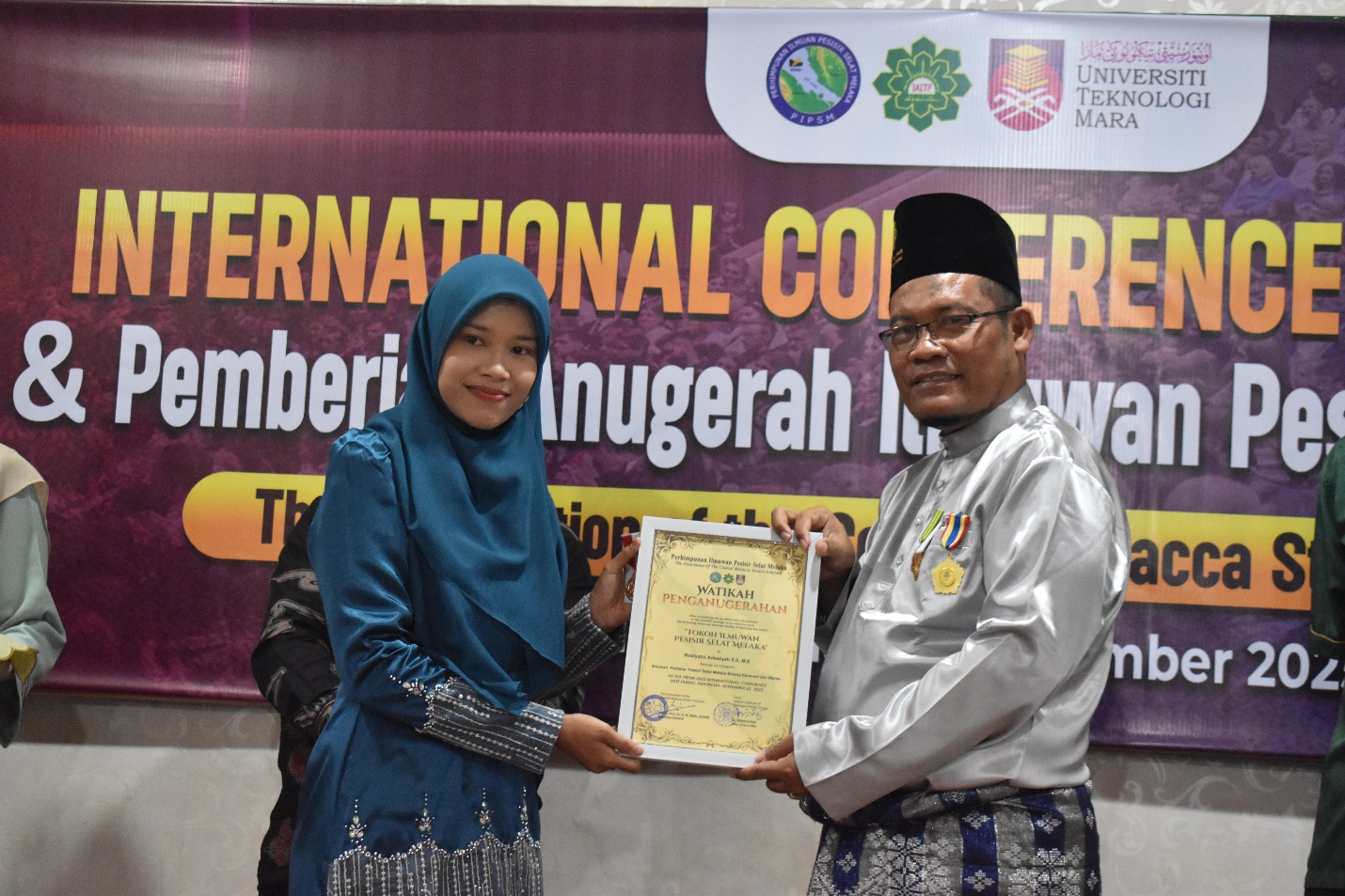 Prosesi penganugerahan dilaksanakan secara resmi dalam satu panggung kehormatan yang dipimpin oleh jajaran pimpinan PIPSM, disaksikan para keynote speaker internasional serta tamu undangan dari Malaysia dan Indonesia. Penyerahan anugerah ini menjadi simbol pengakuan terhadap kontribusi nyata para akademisi IAITF Dumai dalam membangun kajian dan praktik keilmuan berbasis peradaban Melayu-Islam serta respons atas isu-isu pesisir, ekonomi maritim, pendidikan, dan keberlanjutan sosial.