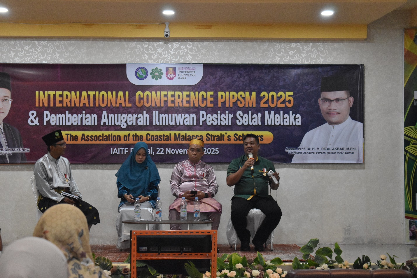 Sesi konferensi dan FGD secara resmi dibuka oleh Sekretaris Jenderal PIPSM, Assoc. Prof. Dr. H. M. Rizal Akbar, S.Si., M.Phil, yang juga menjabat sebagai Rektor IAITF Dumai. Dalam sambutannya, beliau menegaskan bahwa konferensi PIPSM tidak hanya menjadi ajang presentasi ilmiah, tetapi ruang strategis untuk mempertemukan gagasan lintas disiplin guna merespons tantangan kawasan pesisir Selat Melaka, mulai dari persoalan pendidikan, kebudayaan, ekonomi maritim, keberlanjutan lingkungan, hingga transformasi digital berbasis nilai Melayu-Islam.
